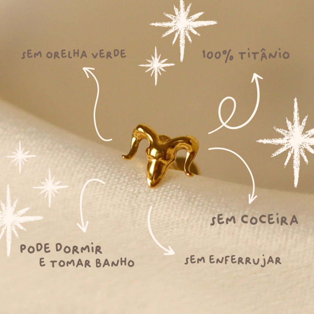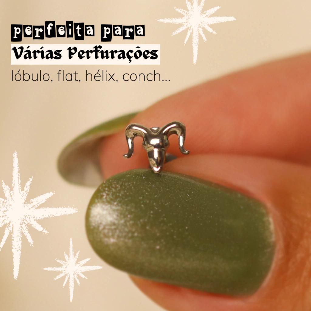 A ligação dos elfos com os animais é unica. O bode representa o selvagem, a purificação e o conhecimento. Essa joia é muito delicada e anatômica. Disponível no prata e no dourado. Essa bebezinha é muito versátil e fica linda no lóbulo, flat, high helix, conch...