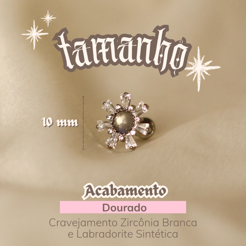 Pedrinhas Brilhantes ✷ Pedra Central Labradorite Sintética e Zircônias Brancas.